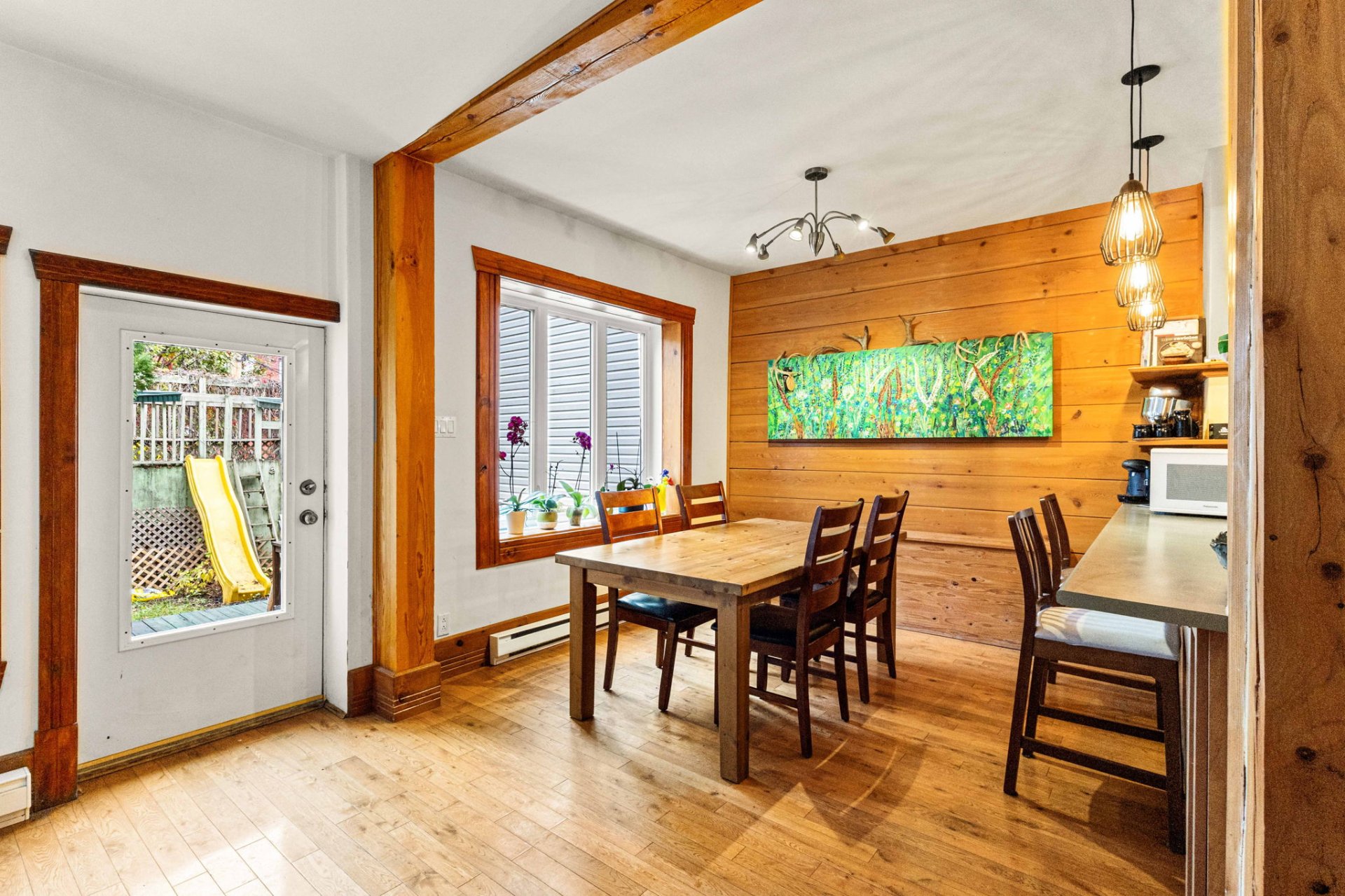 | Salle à manger | 18.5 x 10.3 P | Rez-de-chaussée | Bois |
